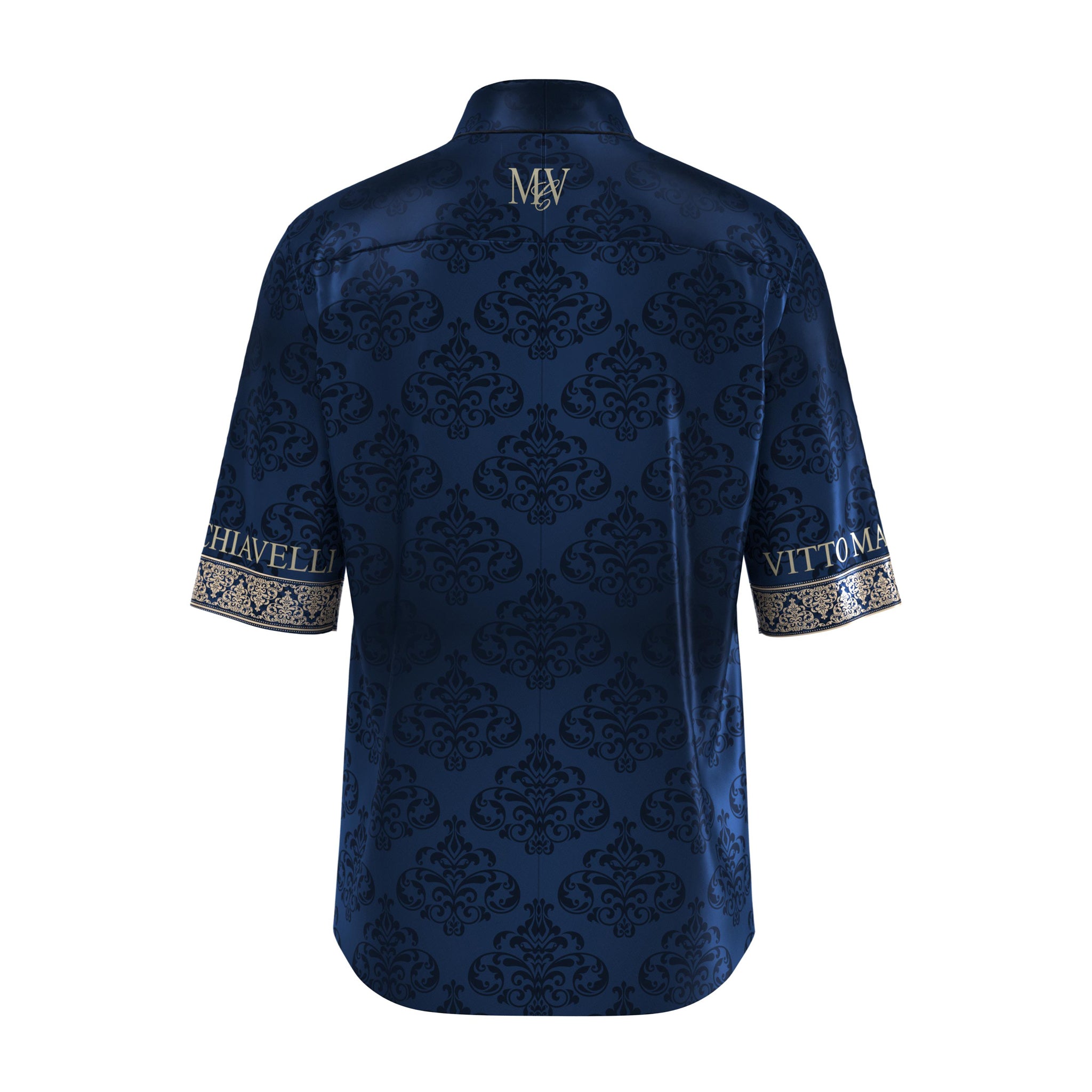 Button up, short sleeve, collared shirt in pure silk - an all-over print featuring heritage baroque and chain elements.